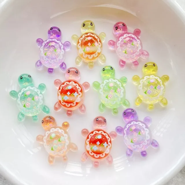 Make your DIY projects stand out with these adorable and colorful sea turtle flatback figurines. Each pack includes 10 charming turtles crafted from high-quality resin, featuring a glossy, shiny finish that captures light beautifully. Their vibrant colors and cute cartoon design will instantly add a playful ocean vibe to anything you create.