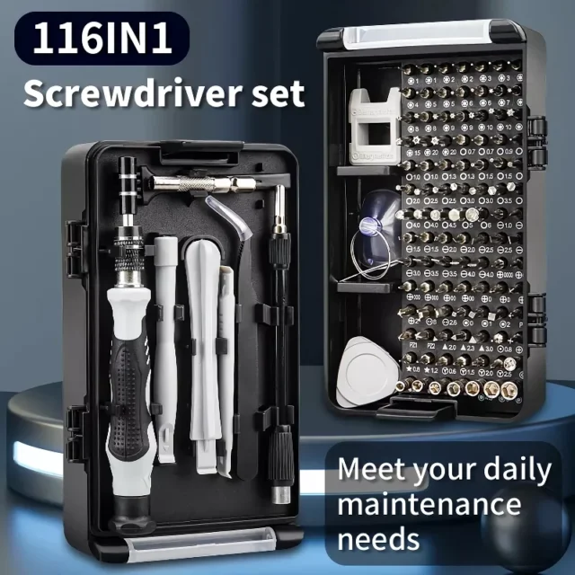 The 116-in-1 Precision Screwdriver Set is the ultimate companion for anyone who loves fixing, upgrading, or tinkering with electronics. Packed with 98 magnetic screwdriver bits and 18 versatile repair tools, this set makes it easy to handle everything from replacing an iPhone screen to upgrading your PC, repairing your Xbox or PlayStation controller, or even maintaining drones and watches. No more searching for the right tool—this set has everything you need in one compact case.