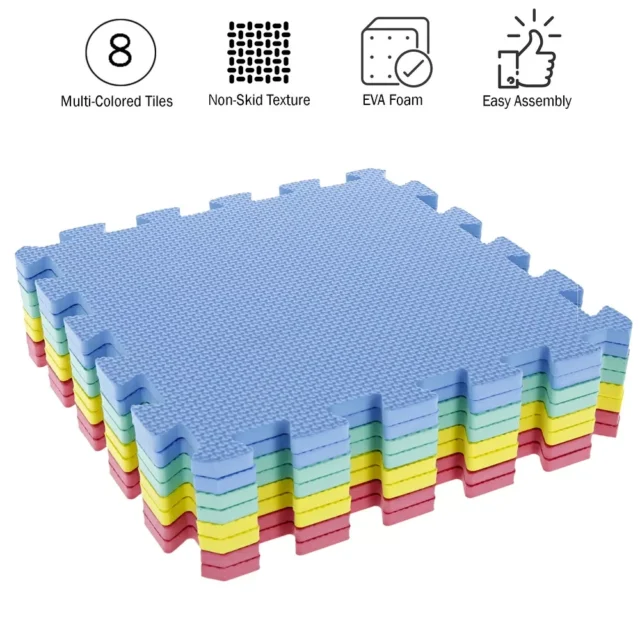 Transform any space into a safe, cushioned workout or play area with these 12.4-inch Multicolor Interlocking Foam Floor Mats. Designed for comfort, protection, and versatility, this 8-piece set provides the perfect foundation for exercise, play, or even outdoor activities. Each mat locks together like a puzzle, creating a secure, non-slip surface that stays in place while you move, stretch, or lift. With vibrant colors and long-lasting durability, these mats are an easy way to add both function and style to your home gym, workshop, or kids’ playroom.