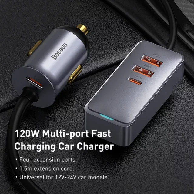 Say goodbye to slow, one-at-a-time car charging. This 120W Multi-Port Fast Car Charger transforms your vehicle into a high-speed charging station. With support for up to four devices charging at once, this compact charger features a mix of USB and Type-C ports, delivering lightning-fast power for iPhones, Samsung, Xiaomi, Huawei, and more. Its built-in 1.5 ft extension cord and intelligent distribution of power ensure every passenger gets fast, stable charging—whether you’re on a short trip or a cross-country adventure.
