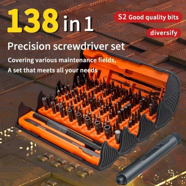 Why settle for limited tools when you can have it all in one precision-engineered set? The 138 in 1 Electric Precision Screwdriver Set is perfect for DIY enthusiasts, professionals, and anyone who values reliable tools. Bring home the kit that makes every repair faster, easier, and more enjoyable—your all-in-one solution for precision work.