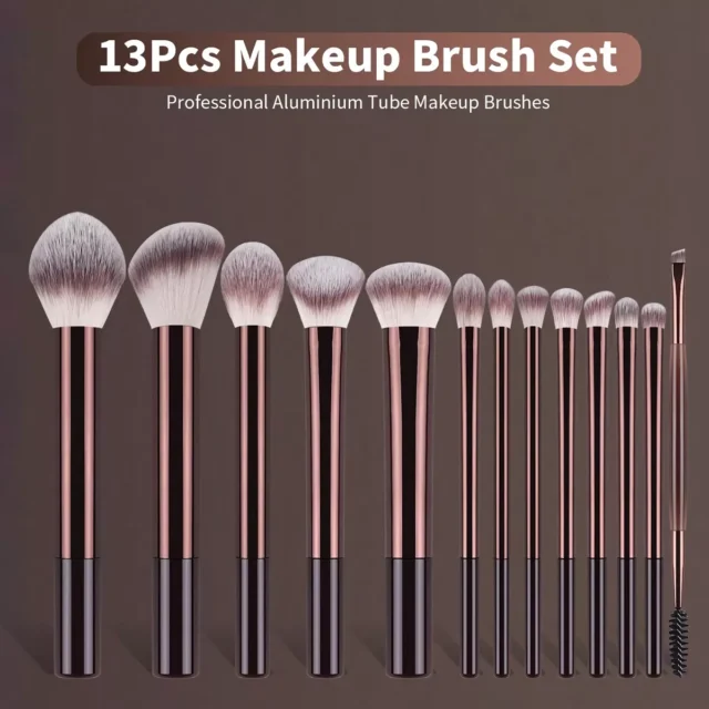 This comprehensive set includes 13 essential brushes, each carefully crafted for different makeup applications: