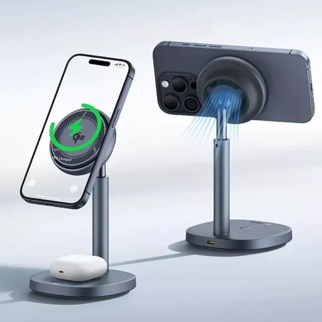 Unlike basic charging pads, this stand gives you the power to charge two devices at once with intelligent heat control and versatile viewing angles. The magnetic hold ensures your phone stays locked in the sweet spot for efficient energy transfer. Plus, the cooling system means your devices stay safe—even during high-speed charging.