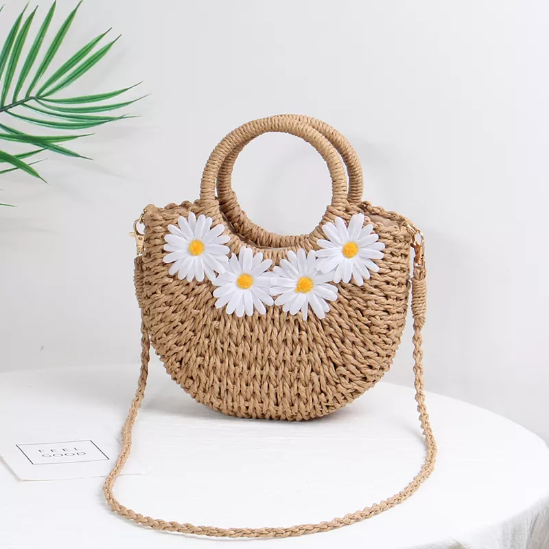 Step into summer with the charming 2023 Little Daisy Handwoven Beach Bag, the perfect accessory for all your sunny adventures. This beautifully crafted straw bag exudes a Bohemian vibe, making it a must-have for beach days, picnics, and casual outings. With its delightful floral appliques and half-moon shape, this bag is not just a practical accessory but a stylish statement piece that complements any summer outfit.