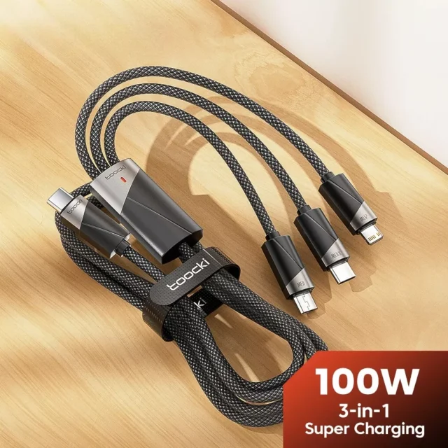 Stay connected and fully charged wherever you go with this versatile 3-in-1 USB-C Fast Charging Cable. Designed for seamless compatibility with iPhone, Samsung, Xiaomi, and other popular devices, this cable is more than just a charging solution. With three connectors – USB-C, Lightning, and Micro USB – you can power up virtually any device without swapping cables. Boasting 100W fast charging capabilities, this powerful cable charges your devices at high speed, giving you the convenience of a full charge in record time. Whether you’re working, traveling, or simply relaxing at home, this all-in-one cable is designed to meet the demands of your busy lifestyle.