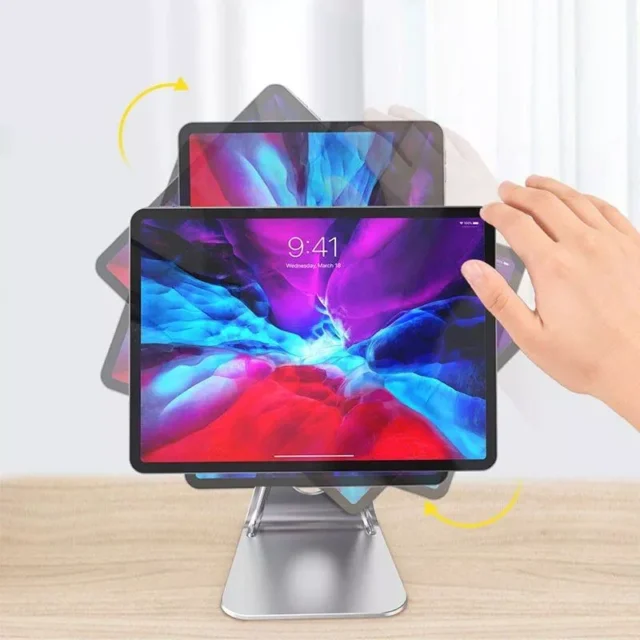 What sets this stand apart is its magnetic technology combined with a sturdy metal build. The magnetic hold means you can quickly attach and detach your tablet, while the aluminum body ensures your device stays in place. Rotate your tablet full circle with a gentle turn, making it easy to share your screen with others without the hassle of removing it from the stand.