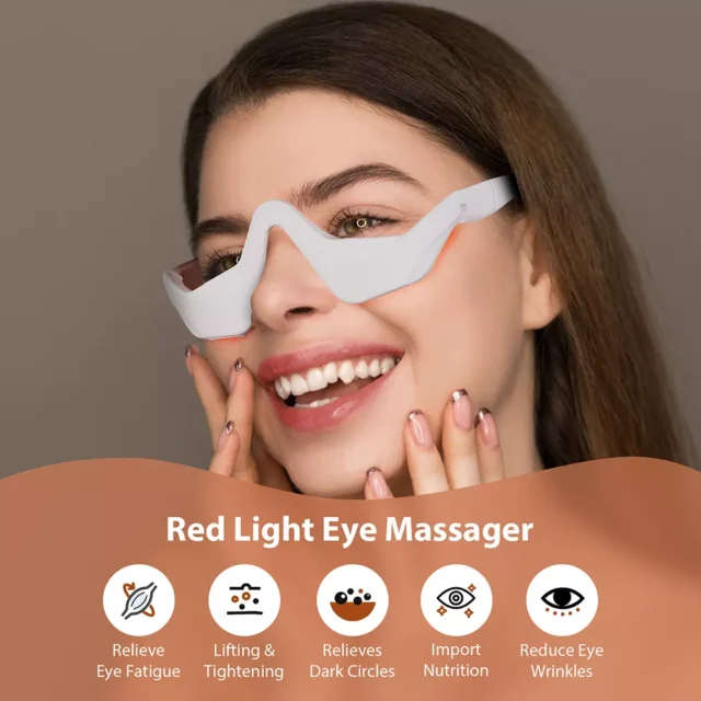 Give your eyes the care they deserve with the 3D Eye Massager Glasses, designed to relieve fatigue, reduce puffiness, and smooth away fine lines. This lightweight, hands-free device combines gentle EMS microcurrents with soothing red light therapy to improve circulation, reduce dark circles, and rejuvenate tired eyes. With its glasses-style design, you can enjoy a relaxing eye massage while reading, working, or watching TV – completely hassle-free.