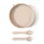 This tableware set is crafted from high-quality, food-grade silicone that is soft to the touch and kind on sensitive gums. With smooth edges and flexible shapes, each piece is easy for tiny hands to grip and maneuver. The solid-colored design fits seamlessly into any kitchen while maintaining a playful and child-friendly look. The dinner plate measures around 7 inches wide, perfectly portioned for small meals and snacks. Ideal for babies aged 6 months and up, this set grows with your child through every stage of early eating.