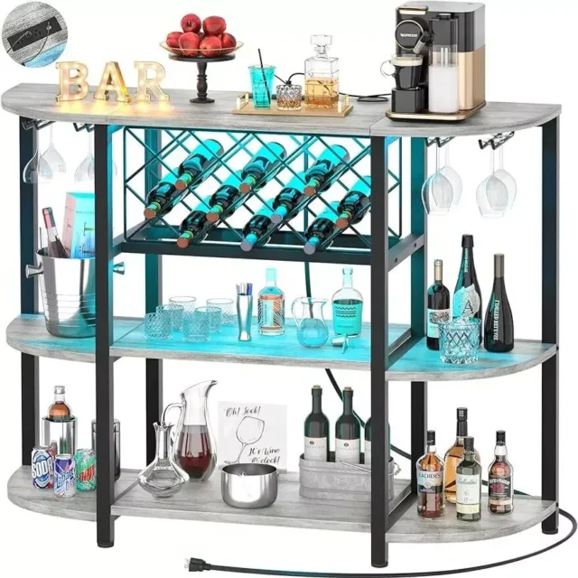 4-Tier Metal Coffee Bar Cabinet with Integrated Power Outlets and LED Lighting