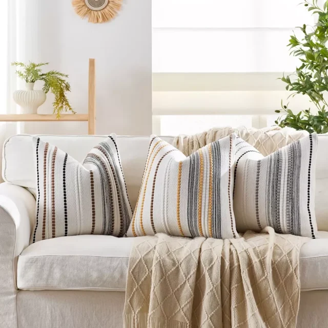 Made from high-quality polyester chenille, this pillowcase feels luxuriously soft while being durable enough for daily use. The jacquard weaving technique creates beautiful raised stripes that add depth and sophistication. Sized perfectly at 18×18 in, it fits most standard throw pillows and is ideal for sofas, beds, bay windows, or headboards.