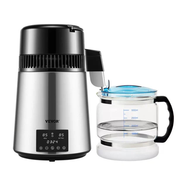 With a heating power of 750 watts, this water distiller processes up to 0.26 gallons per hour — that’s about 6 gallons per day. It uses a 5-stage filtration process to eliminate VOCs, solids, and other harmful elements, so you’re left with only the cleanest water possible.