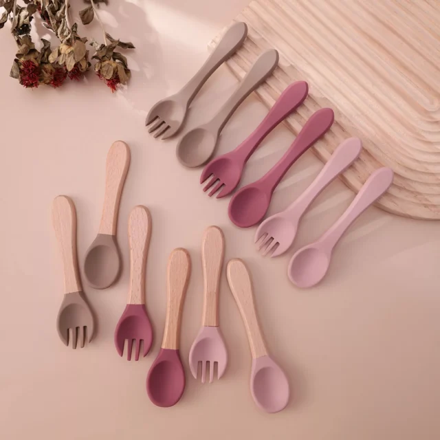 Make mealtime easier and more enjoyable for your little one with this 4PCS Silicone Baby Feeding Spoon and Fork Set. Designed with soft, food-grade silicone tips and smooth wooden handles, these utensils are perfect for infants and toddlers learning to self-feed. The gentle silicone material is safe on baby’s gums, while the ergonomic wooden handle is easy for tiny hands to hold. Free from BPA, PVC, phthalates, and other harmful chemicals, this set ensures a safe feeding experience every time.