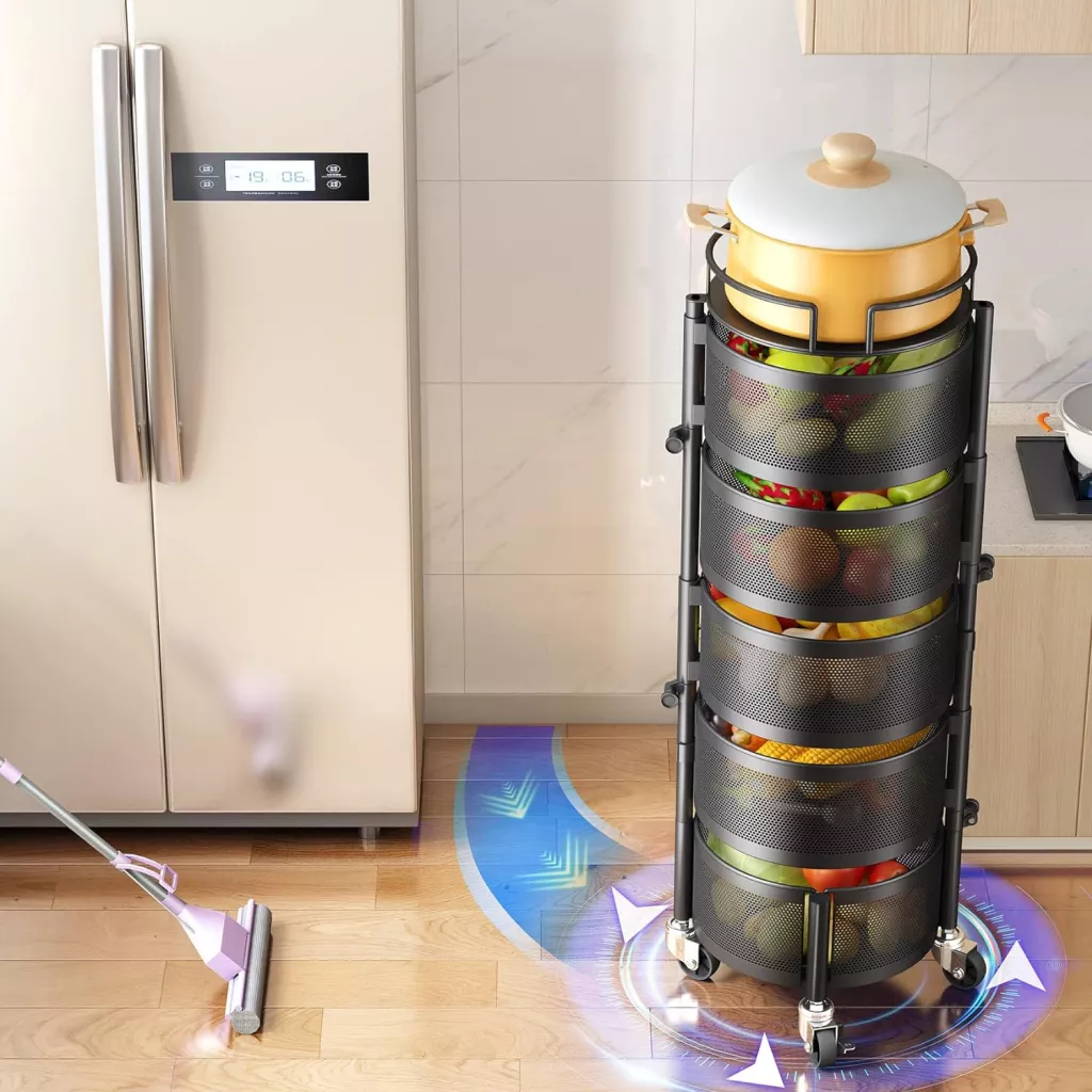 Don’t miss out on the opportunity to transform your kitchen with our 5-Tier Rotating Fruit and Vegetable Basket. Whether you’re storing everyday essentials or displaying beautiful fruit arrangements, this basket is the perfect addition to any home. Order yours today and experience the ultimate in kitchen organization and style!