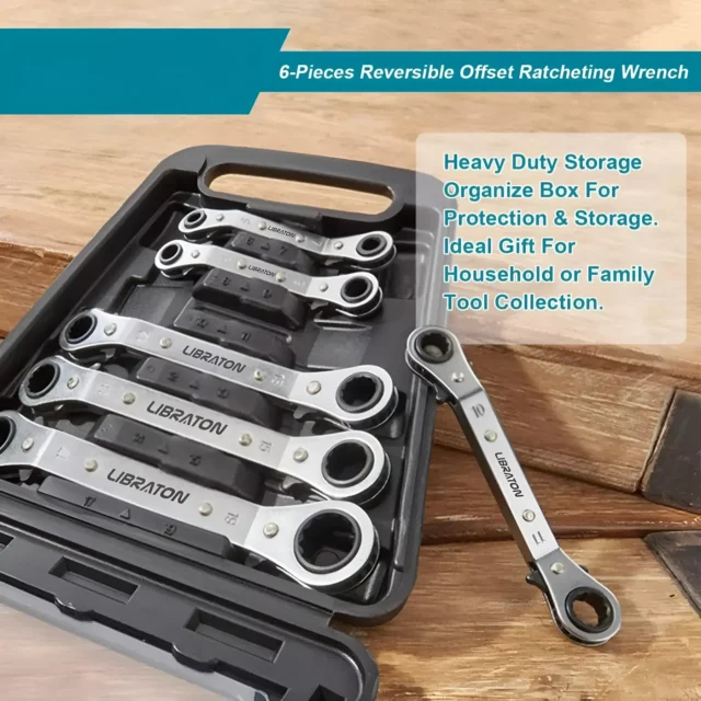 This 6-piece ratchet wrench set excels in various scenarios, from vehicle maintenance and factory work to home repairs and construction projects. Whether you’re reaching tight spots under the hood, securing bolts on machinery, or handling plumbing fittings, these wrenches give you the strength and control you need. Their practical design makes them a must-have tool for both professionals and hobbyists alike.
