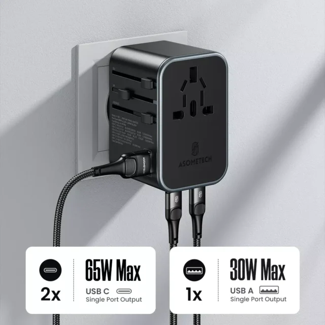 Don’t let low battery slow you down. Upgrade your travel experience with a charger that does it all. With powerful performance, global compatibility, and a smart design, this 65W GaN Universal Travel Adapter is ready to keep your devices charged anywhere in the world. Get yours today and travel without limits!