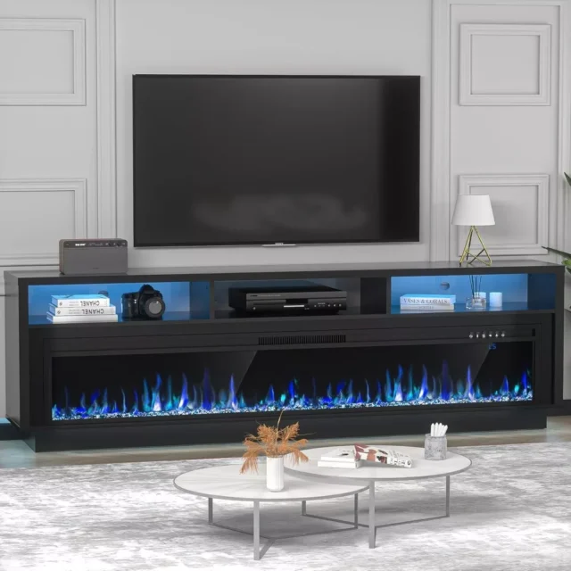 This 70-inch TV stand with a 64-inch electric fireplace is more than just furniture – it’s a statement piece that adds warmth, style, and practicality to your home. Whether you’re binge-watching your favorite shows or hosting guests, it sets the perfect mood with customizable flames and vibrant LED lighting. With its generous storage and sleek design, it’s a smart and stylish choice for any modern living space.