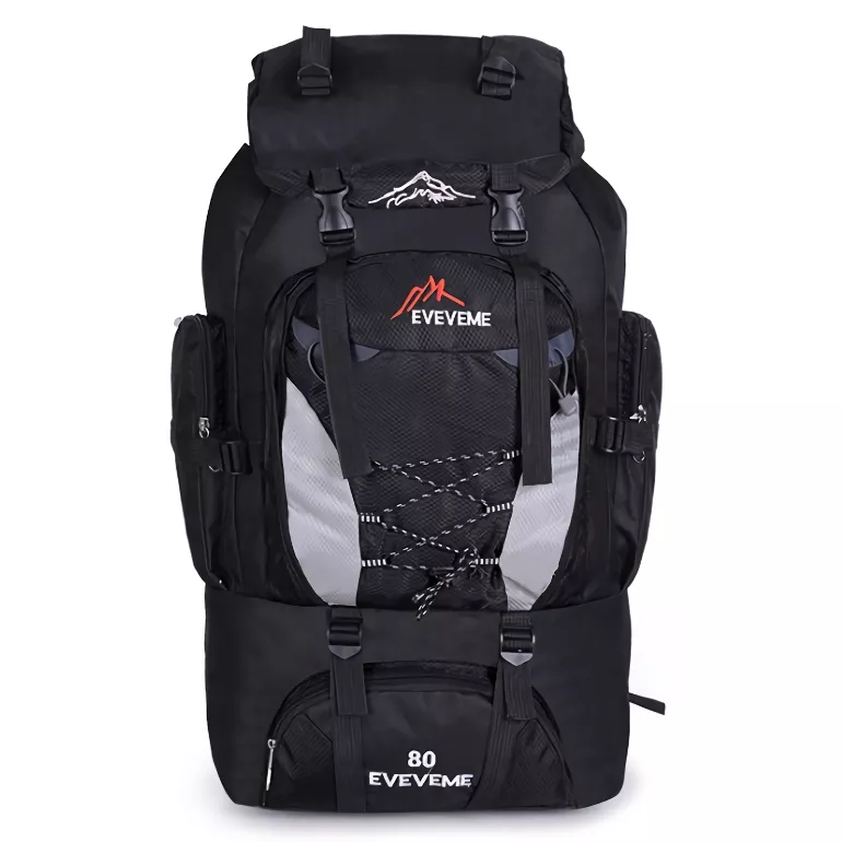 Not just any large backpack, our 80L Outdoor Adventure Backpack stands out with its emphasis on ergonomic design and versatility. It lacks a rain cover, allowing for a lighter design but with an option to add one if needed, catering to diverse weather conditions. The backpack also boasts a weight-bearing capacity of about 25KG, making it ideal for carrying substantial loads without sacrificing comfort.
