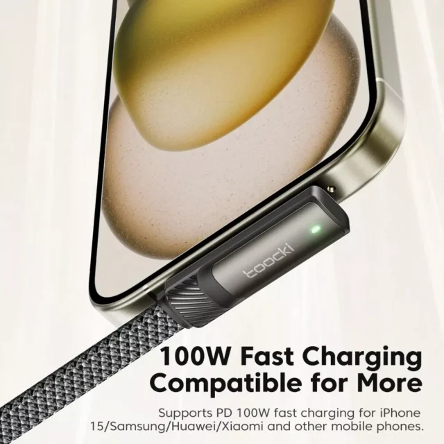 This isn’t just any USB-C cable. Its unique angled design prevents bending and stress on your device’s charging port, extending the life of both your phone and the cable. The ultra-fast 100W power ensures that even high-demand devices charge quickly and efficiently. Lightweight yet sturdy, it’s perfect for home, office, or travel, making it the ultimate companion for anyone who needs speed and reliability.