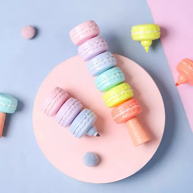 Macaroon Shaped Highlighter Set – 6 Colorful Student Key Markers