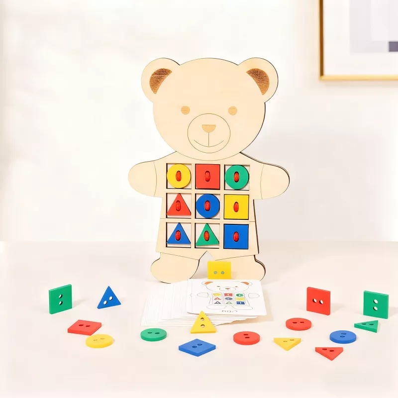 Montessori Wooden Little Bear Geometry Matching Puzzle & Rope Threading Game