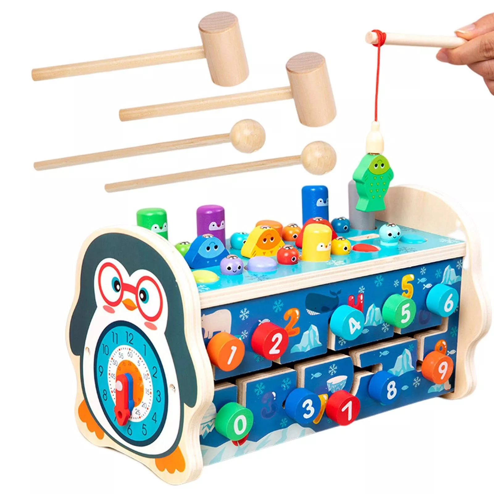 Montessori Magnetic Fishing Owl Cube Clock Hammer Game Puzzle for Kids