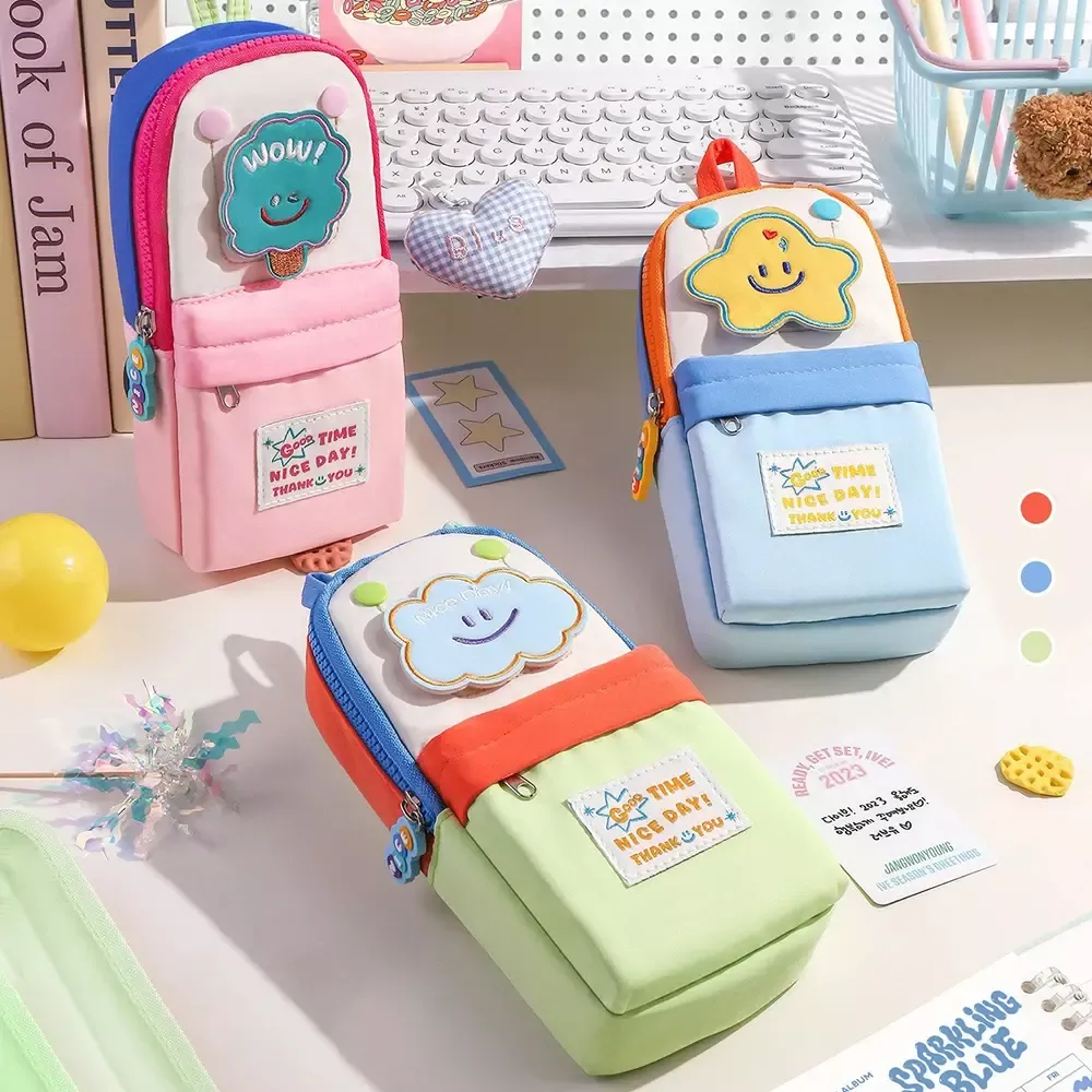 Macaron Color Patchwork Pencil Case – Large Capacity Student Organizer Pouch