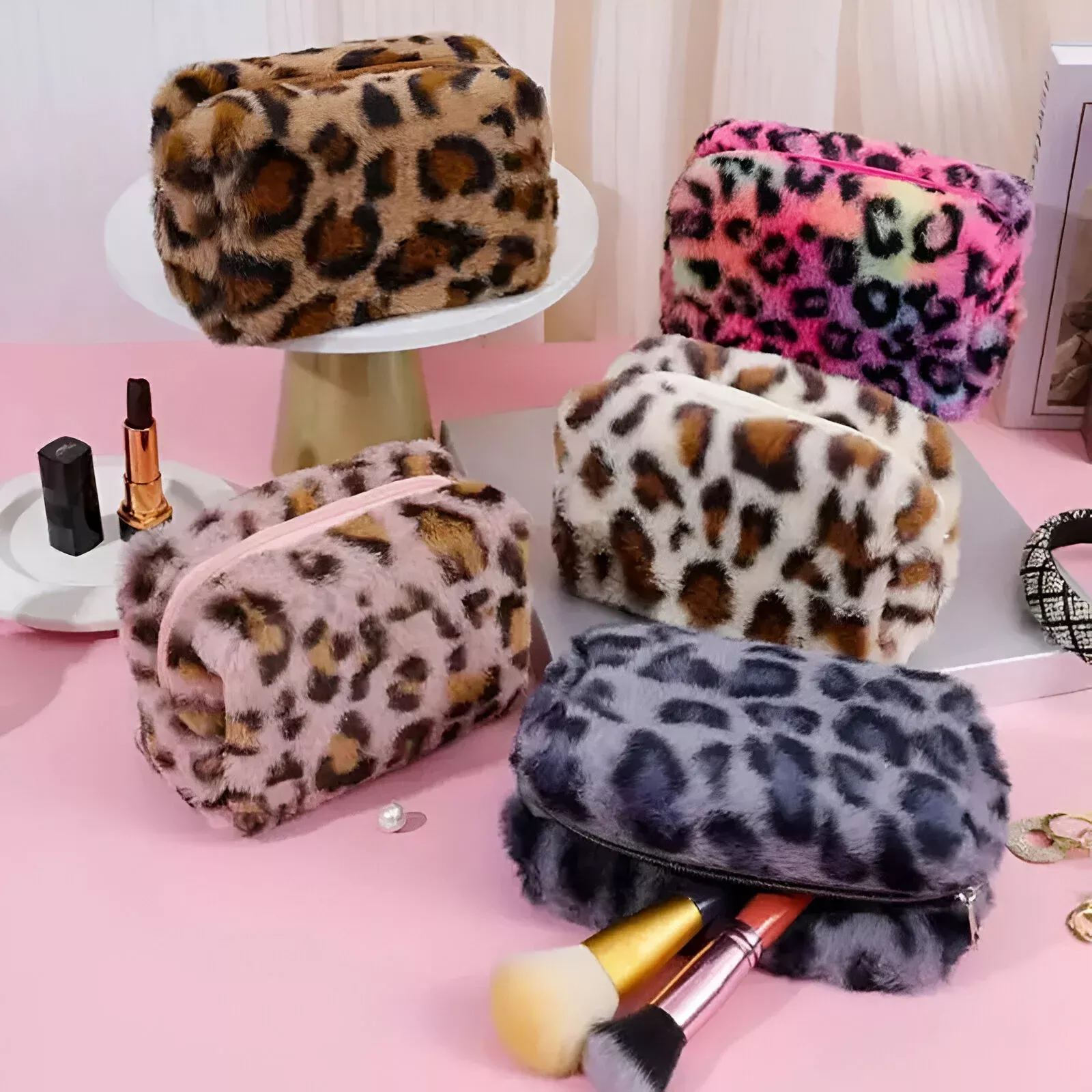 Leopard Print Plush Pencil Case – Stylish Organizer for School & Office