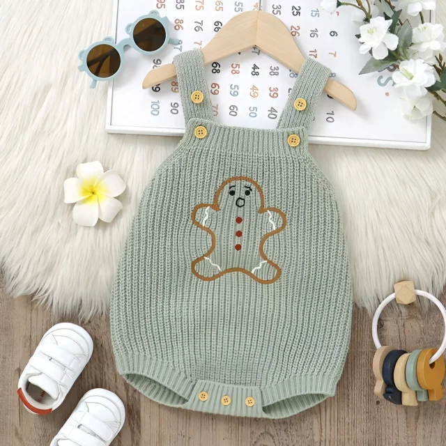 Wrap your little one in the softest warmth and charm with this adorable knitted baby bodysuit! Perfectly designed for infants from newborn up to 18 months, this cute gingerbread man-inspired jumpsuit is an ideal choice for all seasons, offering a blend of comfort and irresistible style. Crafted from soft, breathable polyester, this bodysuit is gentle on delicate skin and free from high-concern chemicals, ensuring it’s as safe as it is stylish. Featuring a charming cartoon pattern, this jumpsuit is bound to bring a smile to everyone’s face. Make it part of your baby’s everyday wardrobe, or use it as an eye-catching outfit for special occasions or seasonal family photos.