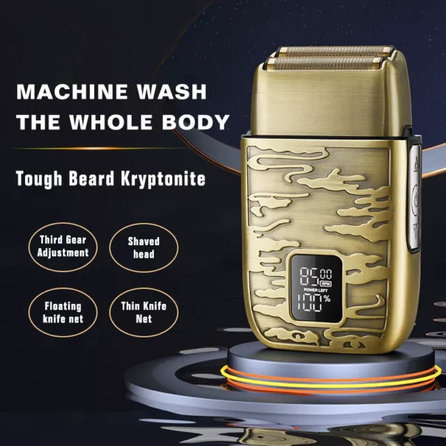 Upgrade your grooming routine with this all-metal digital display electric shaver, designed for men who want precision, style, and convenience. With a sleek, durable metal body and advanced LCD power display, this electric razor delivers a professional-grade shave from the comfort of your home or salon. Perfect for both wet and dry shaving, it is built to handle everything from a quick morning trim to a completely bald look.