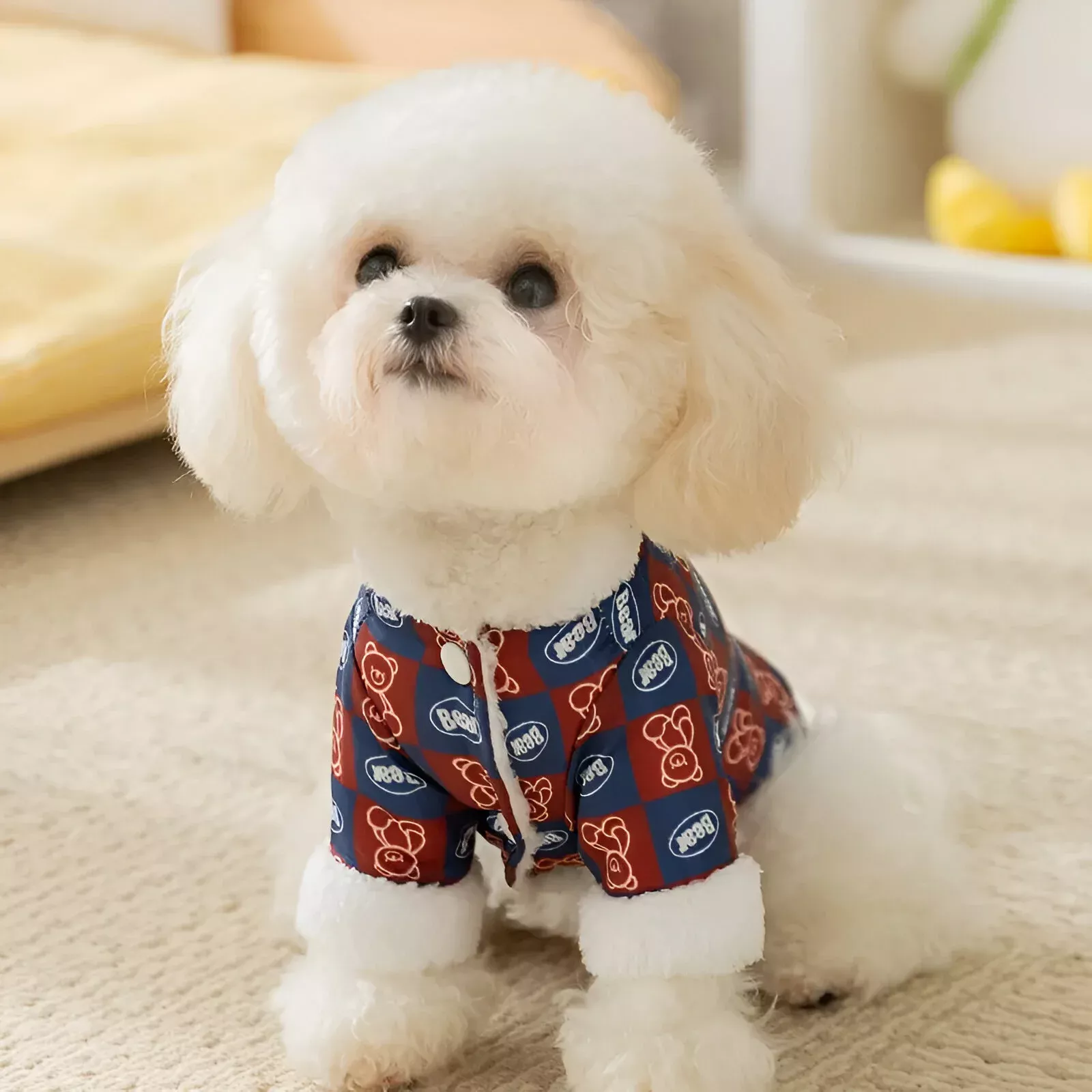 Puppy Winter Teddy Bear Plaid Cotton Jacket for Dogs – Warm & Cozy Dog Clothes