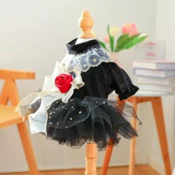 Black Mesh Velvet Rose Dog Dress – Tulle Skirt for Small Dogs