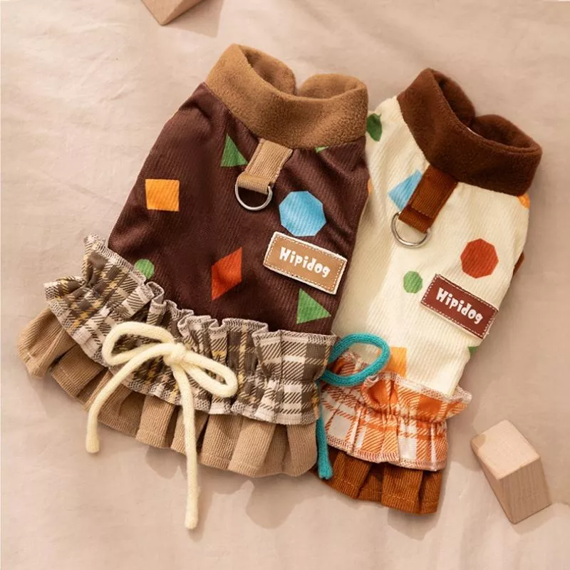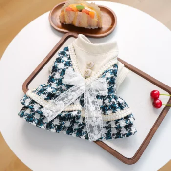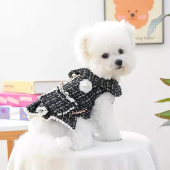Luxury Designer Dog Coat with Pearl Pocket – Autumn Puppy Dress for Girls