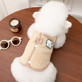 Cozy Lambswool Checkered Jacket for Dogs & Cats – Warm Button-Down Vest