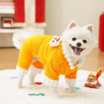 Warm Fleece New Year Pet Jumpsuit – Cozy Four-Leg Outfit for Dogs & Cats