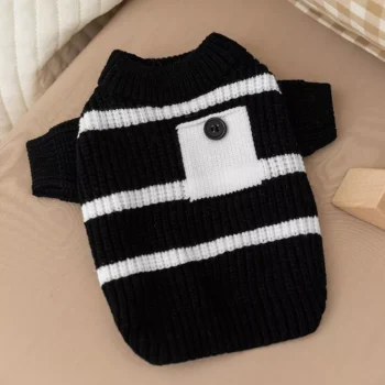 Striped High Neck Dog & Cat Sweater – Warm Autumn Pet Clothes for Small Pets