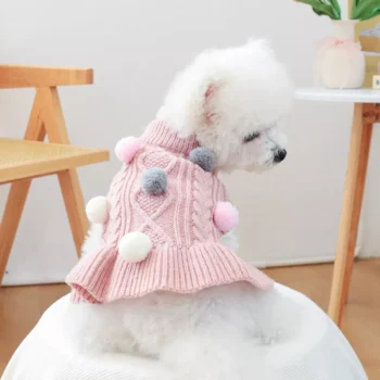 Colorful Wool Knit Pet Sweater Dress for Cats & Small Dogs – Autumn Winter Wear
