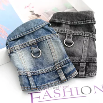 Cool Denim Dog Jacket with Leash Ring – Cowboy Vest for Small & Medium Pets