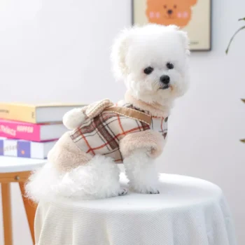 Plaid Plush Pet Coat with Bows for Small Dogs and Cats – Autumn