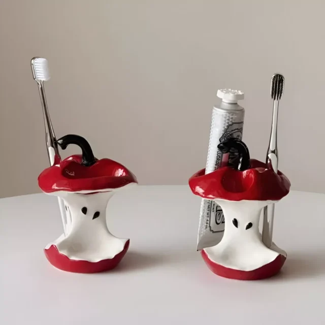 Unlike ordinary storage racks, this toothbrush holder brings personality and charm to your space. The apple core design sets it apart from typical bathroom accessories, making it a fun yet functional ornament. Use it every day to keep your essentials tidy, or place it as a decorative accent in your bathroom – either way, it adds a fresh, stylish vibe.