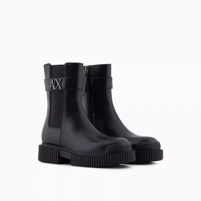 These Armani Exchange women’s boots are more than just a seasonal staple — they’re a statement. Whether you’re heading out in a cozy coat or layering up for a stylish night out, these boots will pull your whole look together. With their rich black tone, round toe, and premium finish, they offer both durability and elegance. Don’t just face the cold — own it, in Armani style.