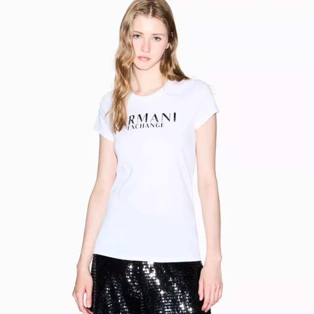 This Armani Exchange Women’s Rhinestone T-shirt is perfect for both casual outings and more polished looks. Wear it on a relaxed weekend, during an afternoon out with friends, or dress it up with a statement jacket for an evening event. Its understated yet elevated design makes it a versatile piece that you can reach for again and again, no matter the occasion.