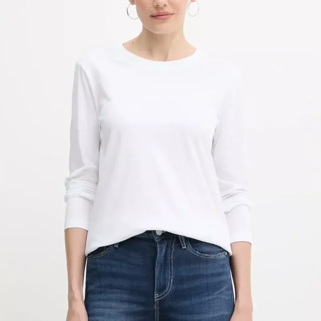 The Armani Exchange Women’s T-shirt is more than just a basic tee. It’s a statement piece that effortlessly blends comfort with contemporary design. Perfect for layering under jackets or wearing solo, its timeless white hue will never go out of style. The long sleeves make it a great choice for cooler weather, while the breathable cotton fabric ensures you’ll stay cozy without overheating.