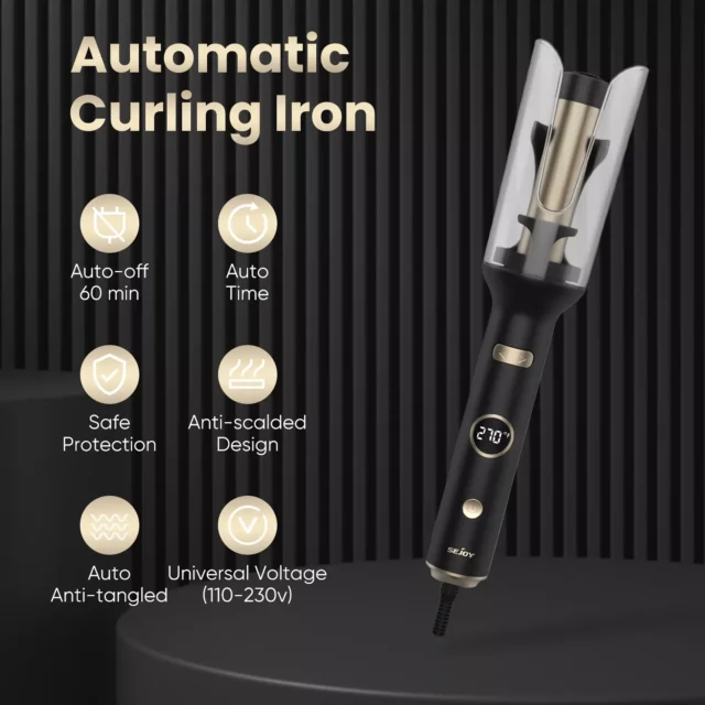 Automatic Ceramic Hair Curler with LCD Display & Dual Rotation