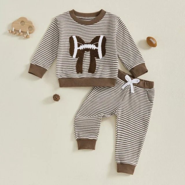 Crafted from a gentle blend of 50% cotton and 50% polyester, this set ensures all-day comfort for your baby’s delicate skin. The long sleeve top features an elegant rugby-style design with a sweet bow embroidery on the front, giving it a classic yet fun vibe. Paired with comfy striped pants that offer just the right stretch, your toddler will look adorable and feel free to move around with ease.
