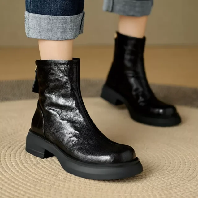 These new autumn women’s boots combine timeless elegance with all-day comfort. Crafted from premium genuine leather, they feature a round toe and a stylish 1.6-inch chunky heel that offers just the right lift without sacrificing comfort. The sleek Chelsea boot design with a convenient side zipper makes them easy to slip on and off, while their versatile look pairs effortlessly with jeans, skirts, and dresses. Whether you are heading to work, meeting friends, or strolling through the city, these boots are designed to keep you looking chic and feeling great.