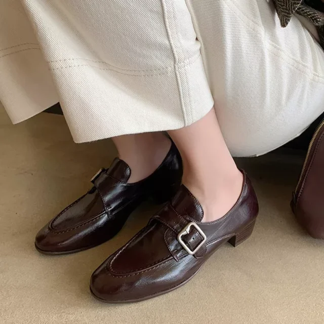 These autumn women’s loafers are the perfect blend of timeless style and everyday comfort. Crafted from premium split leather with a soft genuine leather lining, they provide a chic yet practical option for casual outings, workdays, or weekend strolls. The round toe design and 1.2-inch chunky square heel offer both elegance and stability, while the stylish belt buckle adds a touch of sophistication to your look.