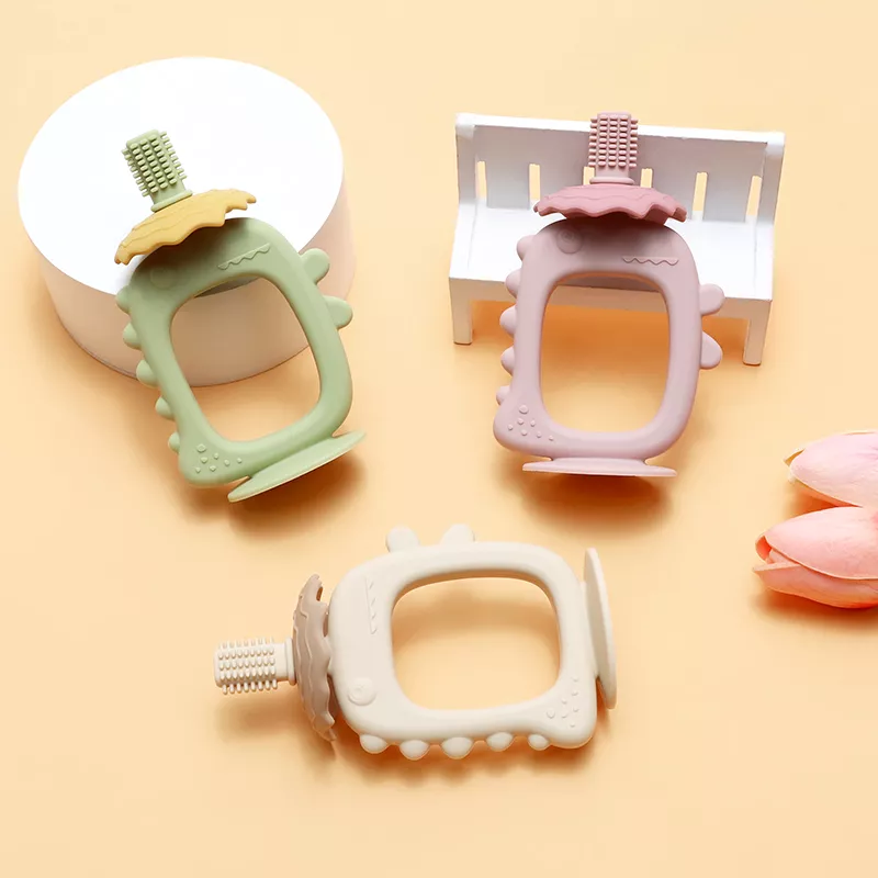 Baby Dinosaur Silicone Teething Toy & Toothbrush – BPA Free Infant Chew Toy