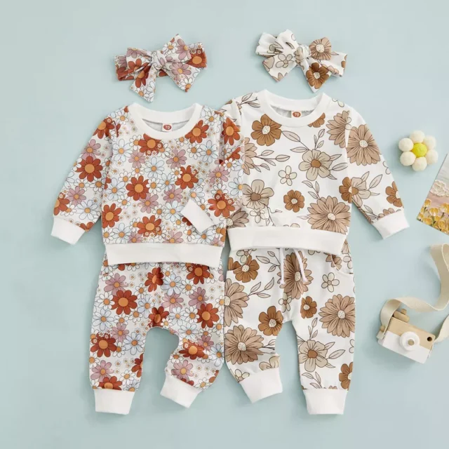 Crafted from a soft cotton blend, the fabric feels gentle on your baby’s skin while offering breathability and flexibility for playful movement. The floral pullover adds a pop of sweet personality, and the stretchy waistband on the pants ensures a comfy, fuss-free fit. The coordinating headband brings the entire outfit together with an adorable final touch that moms and babies alike will love.