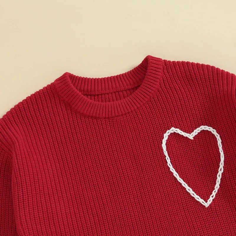 Introducing the perfect addition to your little girl’s wardrobe this Valentine’s Day – our Baby Girl Heart Embroidery Knit Sweater. Crafted with love, this cute long sleeve pullover is not just a piece of clothing; it’s a warm embrace during the cooler days of Spring, Fall, and Winter. Its charming heart embroidery makes it an ideal gift that celebrates love and warmth.