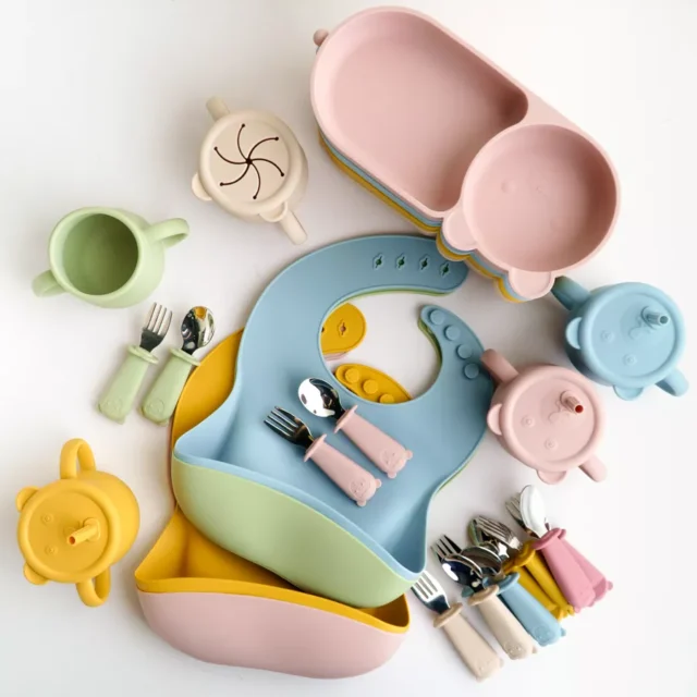 • Complete Set: Includes suction plate, bowl, bib, cup, and utensils for all feeding stages.